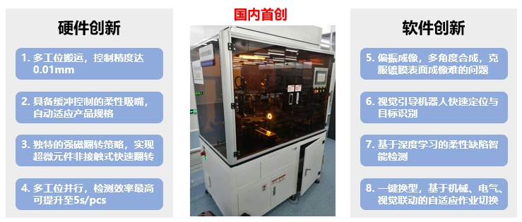 简介:光器件生产自动化主要集中在装配工序,外观缺陷目前100%依赖目视检查。江南游戏开发的面向精密超微型元件检测的高集成一体化智能检测设备,采用深度学习搭配传统定位的算法,实现对微观精密产品的自动定位、吸取、上下料、外观检测(麻点、划痕、崩边、脱模、内裂等),防止人工操作带来的二次损伤。